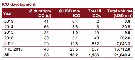 ICO 2018 vs anni precedentiSecondo il report, il fenomeno delle Initial Coin Offerings (ICO) ha visto un piccolo calo da dicembre 2017, ma sta rapidamente riprendendo vigore: