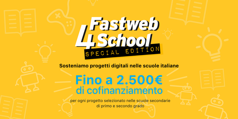 Con la nuova edizione di Fastweb4School, Fastweb offre alle scuole la possibilità di proporre un progetto tecnologico, digitale ed innovativo per la scuola. L’apprendimento dell’utilizzo di una stampante 3D, la partecipazione ad un corso di formazione digitale, lo sviluppo di un’App o la realizzazione di un progetto per la salvaguardia del patrimonio culturale sono solo alcuni esempi dei temi che possono essere esplorati dai progetti proposti.