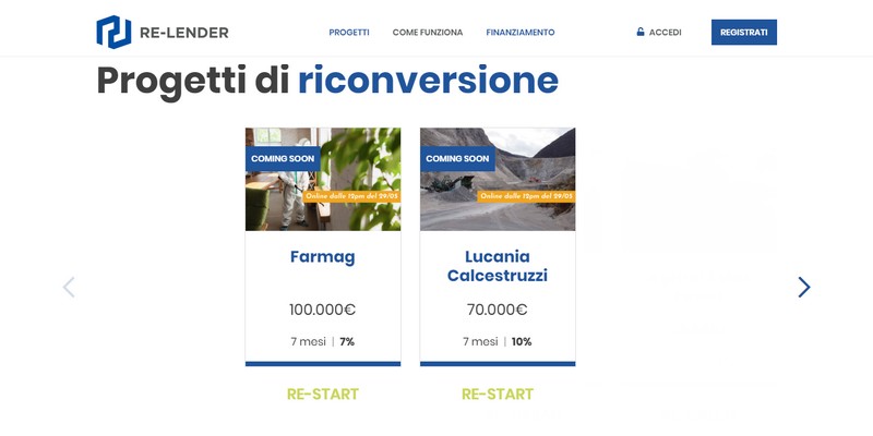 Re-Lender è una piattaforma di lending crowdfunding lanciata in Italia nel 2019 che ha promosso fino ad oggi la raccolta di finanziamenti per la riconversione di immobili, ma anche di progetti green. Il significato del nome RE-Lender combina infatti i termini “Reconversion” e “Lender” sottolineando da un lato la finalità dei progetti (le riconversioni) e dall’altro il modello del crowdlending, dove il sottostante dell’operazione è un prestito.
