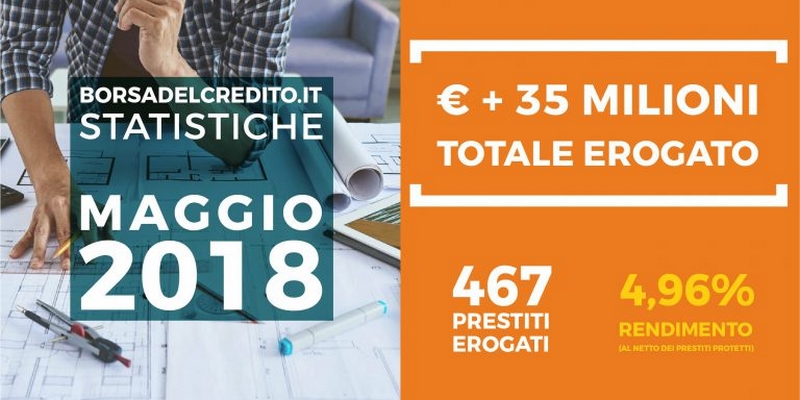 Con i 2,5 milioni erogati nel mese di Maggio, la piattaforma di P2P lending BorsadelCredito.it ha erogato complessivamente, dalla sua fondazione a fine 2015, più di 35 milioni, distribuiti su 467 prestiti ad altrettante PMI italiane. Una crescita impetuosa, dal momento che a maggio 2017 il numero delle imprese finanziate attraverso dal portale era di 315 e l’ammontare complessivo erogato di 12,27 milioni.