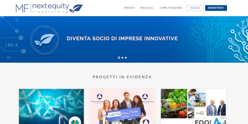 Nella medesima occasione, il direttore di Milano Finanza, Gabriele Capolino è entrato nel consiglio d’amministrazione. La delibera di aumento di capitale risale all’agosto scorso, ma l’operazione è stata perfezionata il 5 Novembre. Next Equity ha anche modificato la sua ragione sociale che ora è MF NextEquity Crowdfunding ed ha anche operato un significativo restyling del portale.