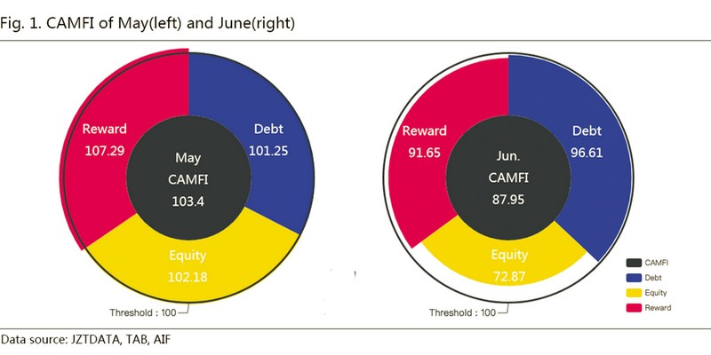 TAB riporta che le ultime metriche di CAMFI mostrano che l’industria ha registrato una tendenza al ribasso nel mese di Giugno, con l’indice CAMFI che scende dal valore di 103,40 del mese maggio a quello di 87,95 in giugno, con una flessione del 14,9%.