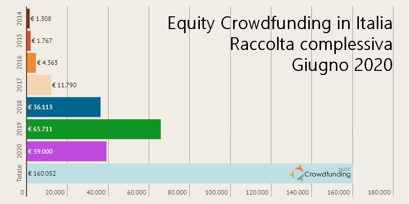 La raccolta di capitale di rischio di startup e PMI italiane attraverso equity crowdfunding non si è fermata, nonostante il periodo di crisi. Nei primi sei mesi del 2020, infatti, 67 iniziative hanno raccolto 39 milioni di euro, 11 in più rispetto allo stesso periodo del 2019 (+40%).