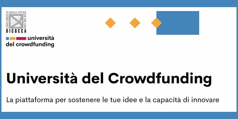 Sono i cinque progetti selezionati (qui la graduatoria) nell’ambito della seconda call dell’Università del Crowdfunding, il programma di finanza alternativa dell’Università di Milano-Bicocca, promosso, per consentire a studenti, ex studenti, docenti, ricercatori, dottorandi e dipendenti dell’Ateneo di realizzare progetti innovativi e idee imprenditoriali attraverso campagne di raccolta fondi sulla piattaforma Produzioni dal Basso. Le cinque proposte selezionate fanno tutte capo a project leader donne.